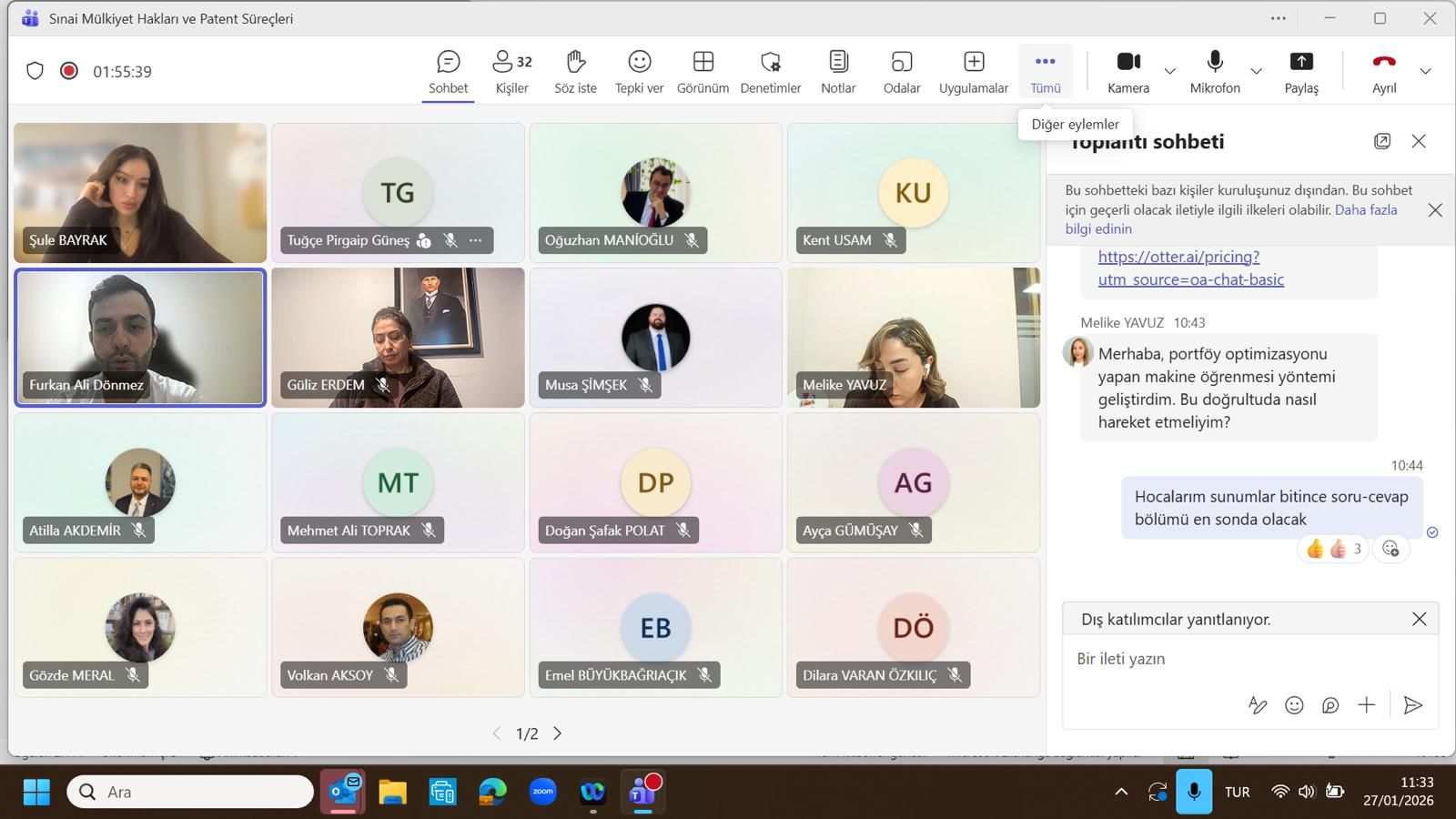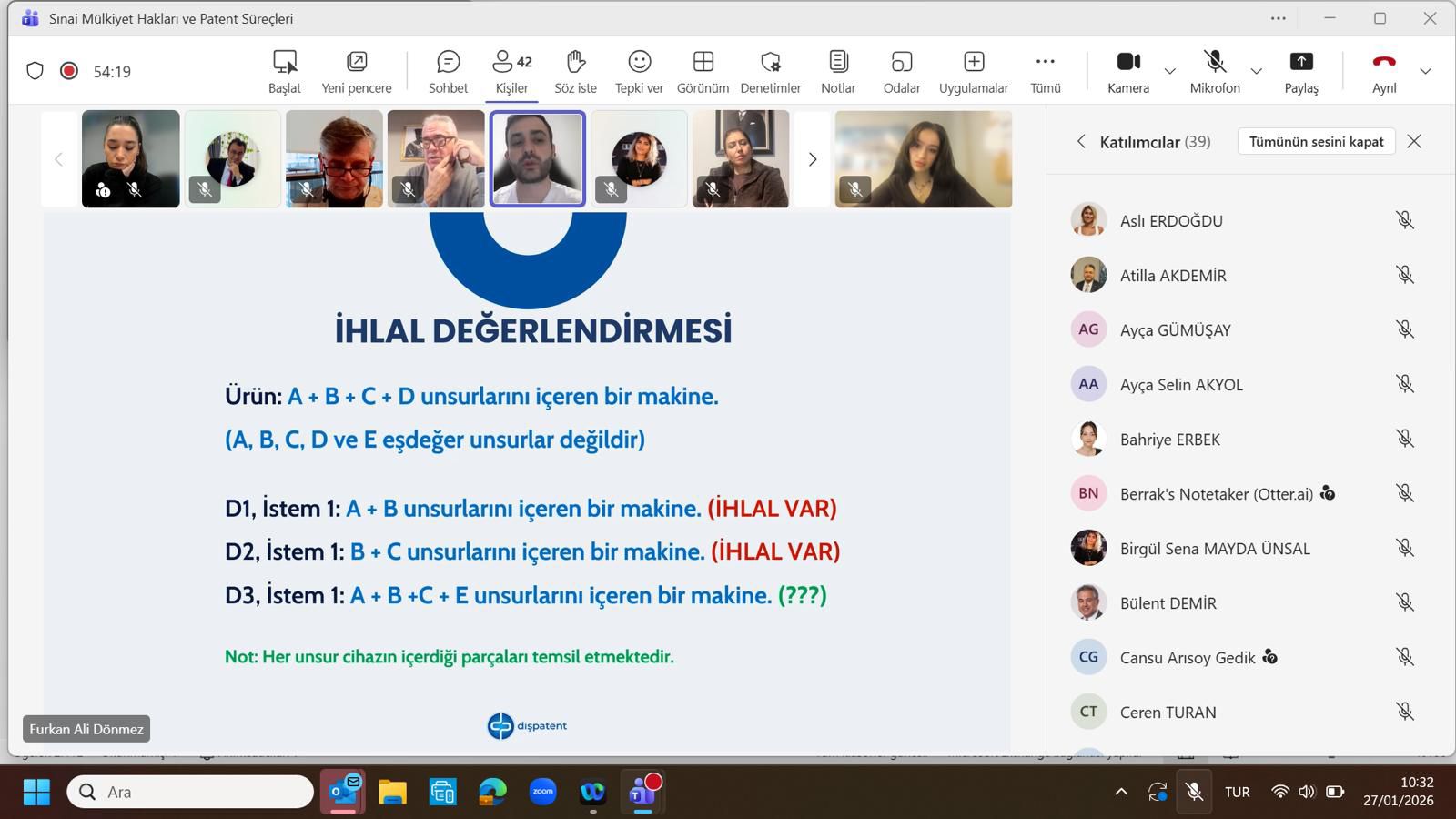 Eğitimde; Dış Patent Patent Departmanı Bölüm Yöneticisi Sayın Furkan Ali Dönmez ve Portföy Yöneticisi Sayın Tuğçe Pir Galip Güneş, patent süreçlerine ilişkin bilgi ve deneyimlerini katılımcılarla paylaşmıştır. Program kapsamında; buluş ve patent kavramları ile patent başvuru süreçlerine ilişkin temel bilgiler ele alınmıştır.